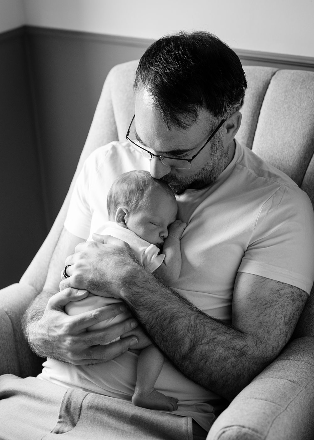 I always encourage parents to be in the photographs, even if you’re feeling a little camera-shy in those early postpartum days. I promise, years from now, you’ll be so grateful to have these images with your baby in your arms.